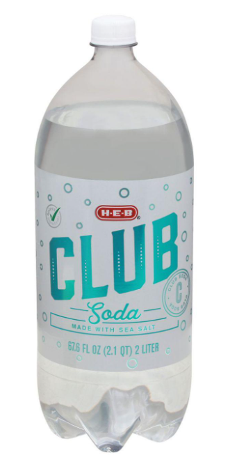 H-E-B Club Soda 2 liter bottle. Made with sea salt.