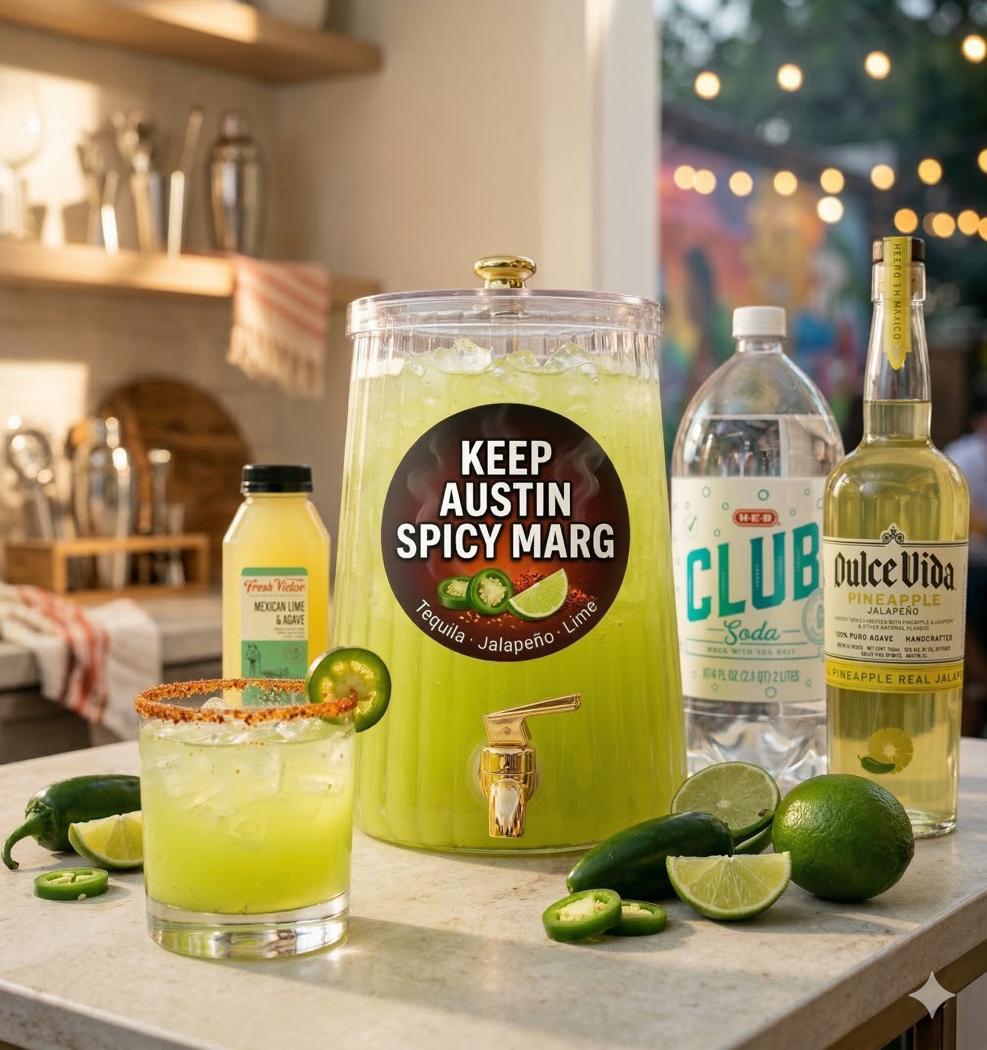 For the spice lovers. Tanteo Jalapeño Tequila meets Fresh Victor Mexican Lime & Agave with a club soda fizz. Medium heat, maximum flavor. Serves 16 drinks. Drink dispenser included.
