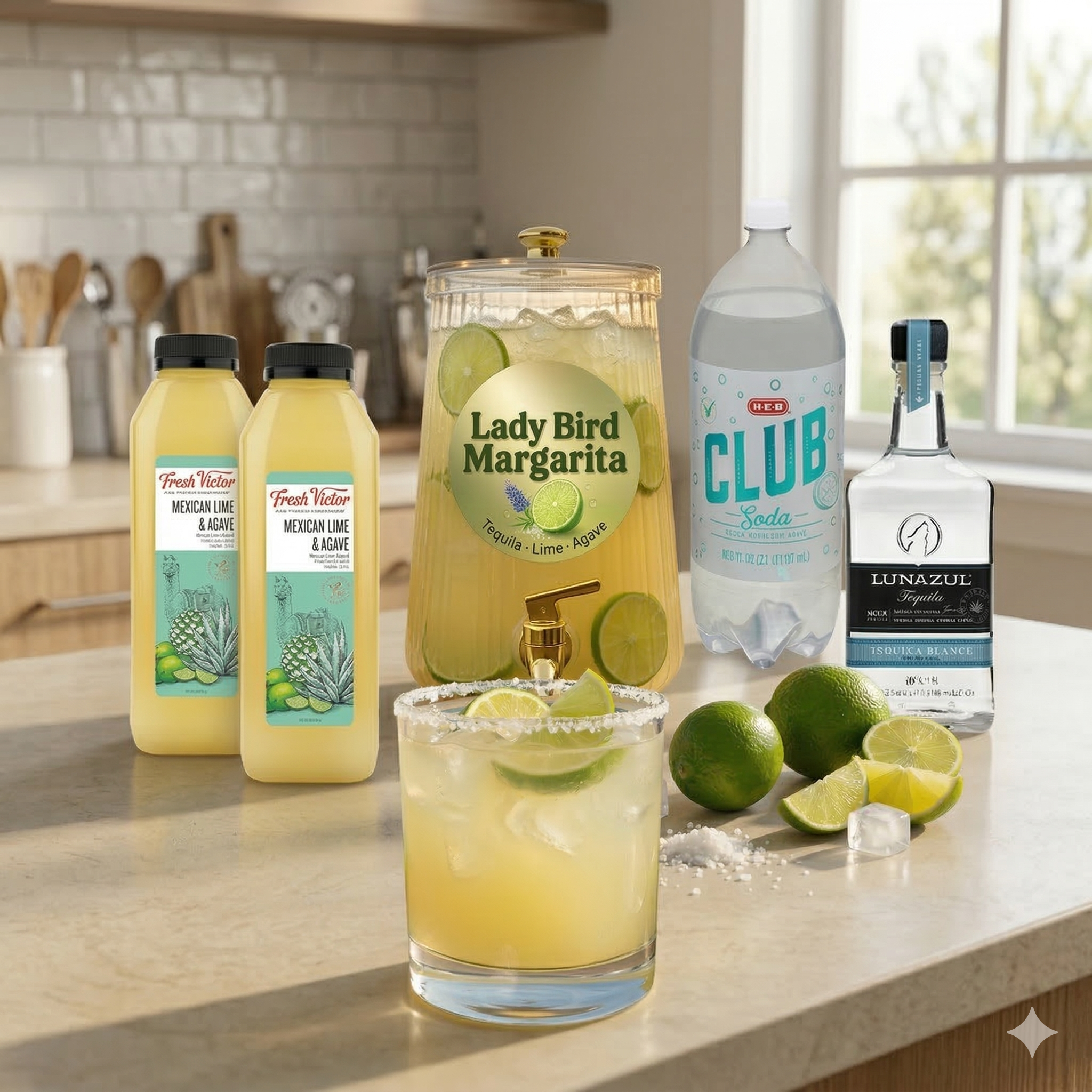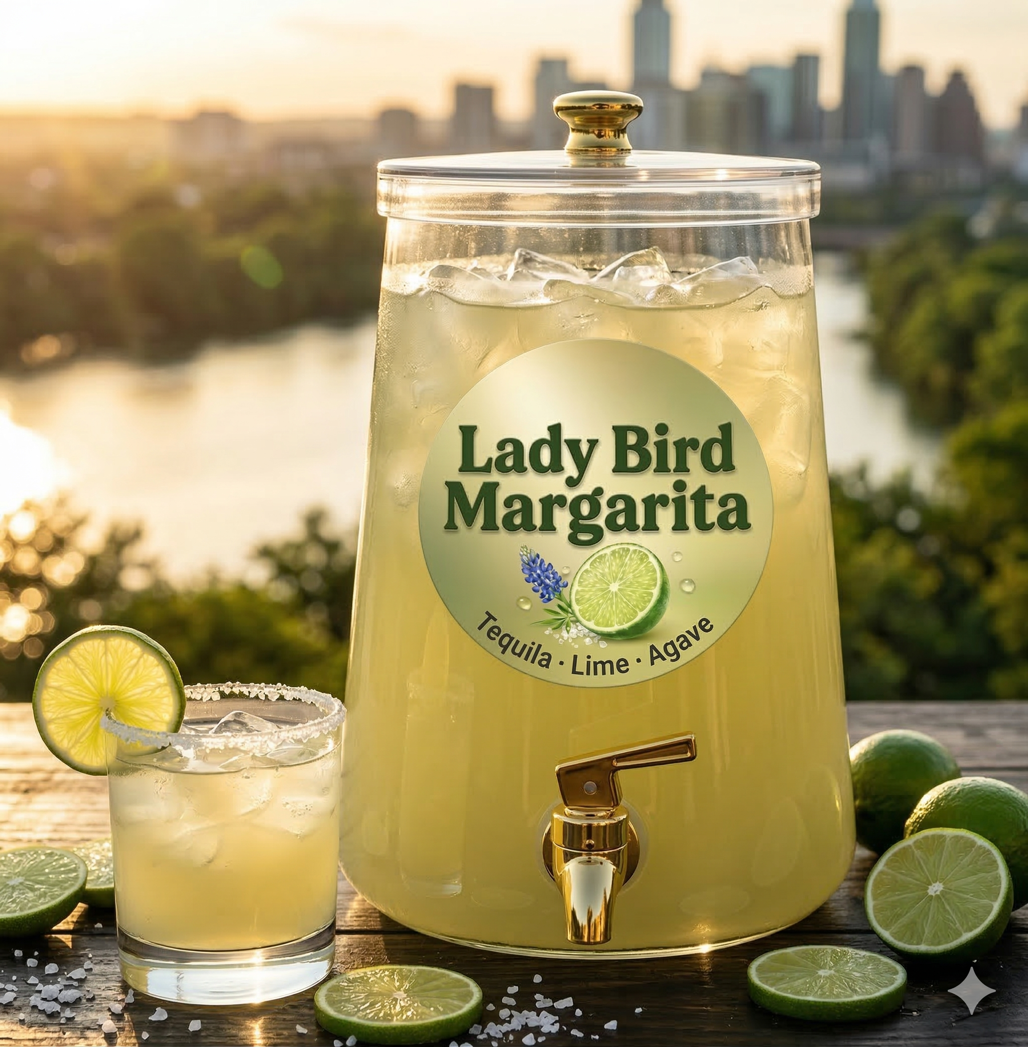Our signature Austin margarita. Lunazul Blanco Tequila with Fresh Victor Mexican Lime & Agave and club soda. Refreshing, balanced, and ready to pour. Serves 16 drinks. Drink dispenser included.